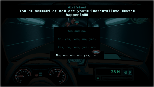 You're driving down a long stretch of road in the middle of the night. Your phone won't stop ringing and your signal won't stop breaking. Try your best to understand people (or animals?) over the phone. Don't forget to keep your eyes on the road.
